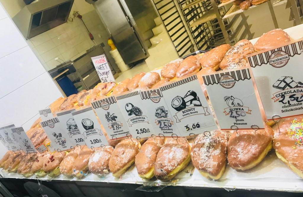 Food was terrific in Poland! Doughnuts are the best I have ever had – I ordered a dozen for the flight back, wanted to make sure I got to taste one of every flavour – Fear of missing out! Those dumplings are also an intriguing Polish cuisine; we tried blueberry pierogi. When I go back to Poland, I know on my list to have will be the savoury pierogi with potato and cheese.