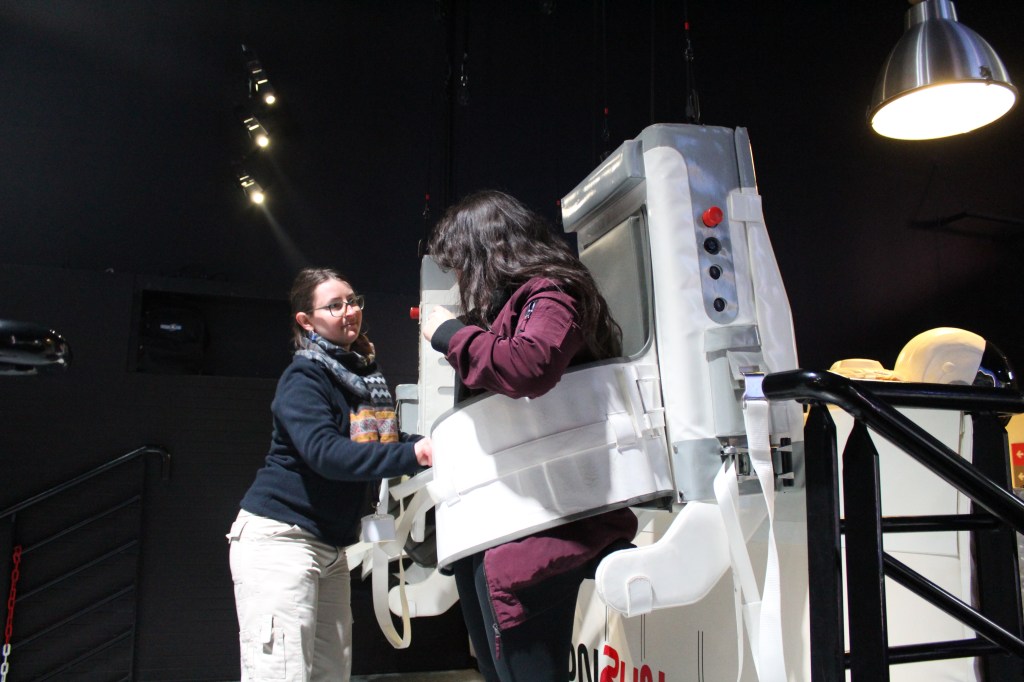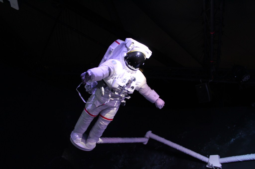 My favourite was the ‘feeling on the moon’ gravity experience. Pop into a harness spacesuit and bounce around whilst trying to control your navigation; this was difficult to do. I struggled to get my feet back on the ground, so I was left dangling in the air stuck!